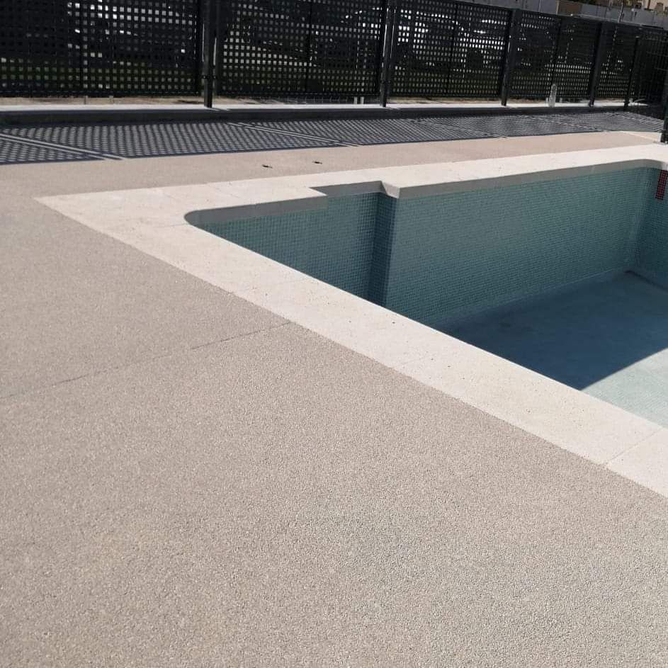 Es un pavimento generalmente ejecutado a nivel y sin pendientes superficiales. Las juntas de dilatación son necesarias y se realizan utilizando juntas de neopreno EPDM de doble forma cónica.